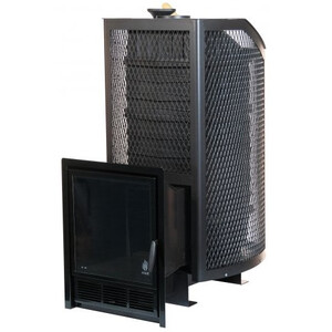 Печь банная чугунная Амур с закрытой каменкой. Панорамная дверца (сетка)